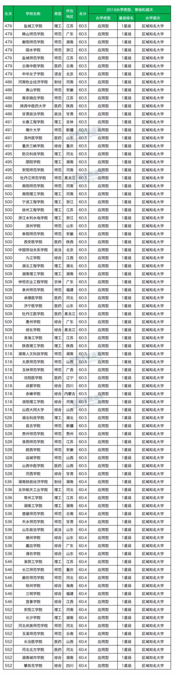 2016中国大学排行榜700强详细名单